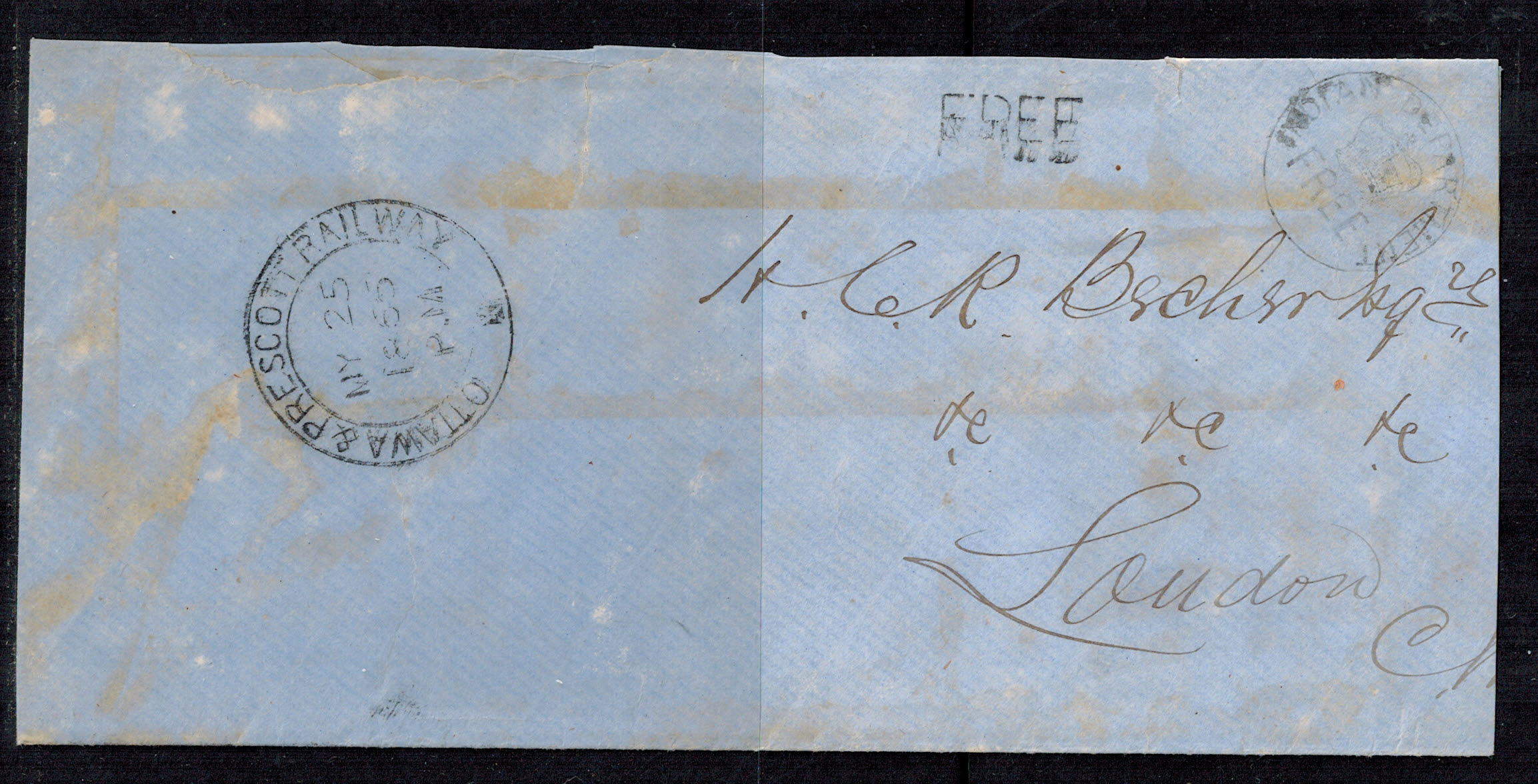 Lot# 1986: GOLD RUSH COVER From San Francisco to Victoria BC, dated 1877. Badly torn at top........Image