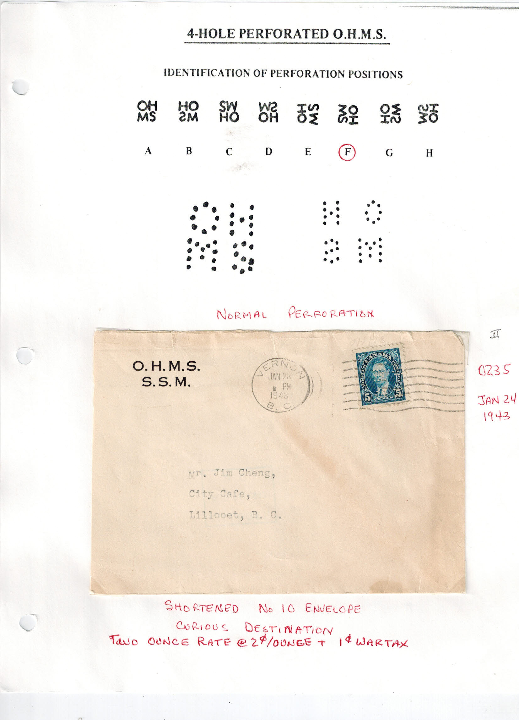 Lot# 24: KASLO BC Unusual oval Registration cancel ties 2 cent red and 5 cent blue Admirals, dated 1916........Image
