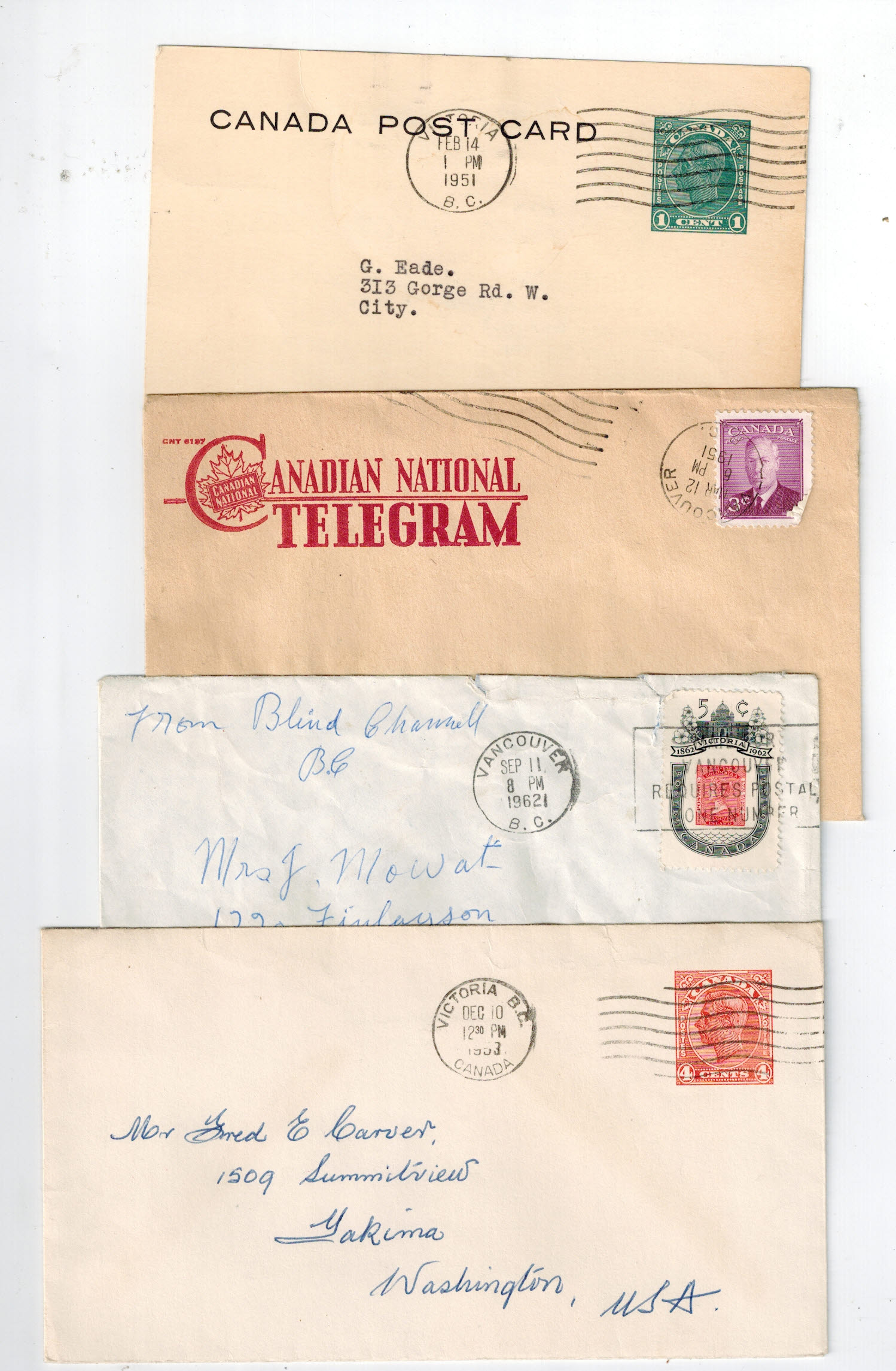 Lot# 6: BRIGHOUSE BC Three Registered covers + One non Registered, various frankings........Image